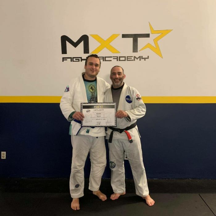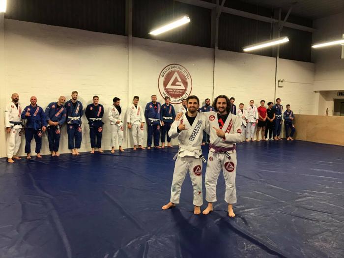 Hey how’s it going? My name is George and I train at Gracie Barra Yeovil, I’ve been training almost 3 years now and my aspiration is to eventually get to a position to open my own school and pass on everything I have learned/will learn to as many people as I can. I met my coach at my Army Cadet centre when I was 16 and fell in love with grappling there and then, unfortunately I was committed to Cadets at the time and was unable to peruse both. When I left the Cadets at 18 I got in touch with my coach again to see if he was still teaching BJJ and it was one of the best decisions I’ve ever made. From that simple message I have made friends for life and found a Career as an assistant coach with a newfound goal of getting my black belt and passing on as much knowledge as possible to whoever wants to learn it. Image below is when I officially became an apprentice to my coach Sam Dunn, of which I owe everything to. Without him and everyone else at GBY I wouldn’t be the man I am today or the man I will become in years to come. ![]() |