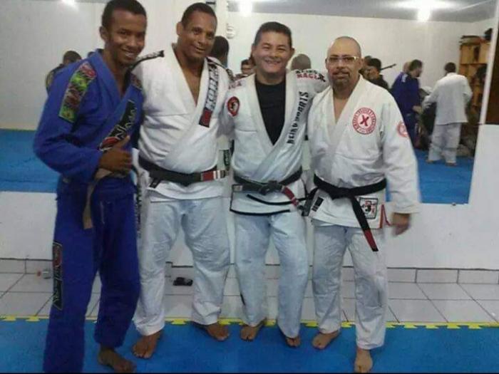My name is Claude Lawson or 'Claudio'..started martial arts at 5 so 45 years almost 46 years ago. Started Kajukembo - Boxing/kickboxing w/James Cox in 93 and began BJJ in 94 with Jimmi Chaikong in Abilene Tx, I was stationed at Dyess AFB, couple of Bases later I found myself in Norcal..trained a little shoot wrestling and Sambo and slowly found my way to Cesar Gracies school. met a young purple named Dave Terrell there , took a little break to finish school and when Dave opened his own school I started training there and operated my own little grappling club on base, Dave even came by to do a seminar for me.. I became an AF Recruiter in Phoenix AZ,train at AZ combatsports a few times, then trained at Mountainside fitness with Greg Holmes,I believe his name was... hooked up with a couple of his blue and purple belts and we would go around Phoenix and train at different schools..the purplebelt now black belt under ,Prof Jay Pages named David Farias...from there I was stationed in Clovis NM in 2009, with Prof Courtney Westley,he was under Prof Jefferson Vilhena /Equipe Vilhena... Courtney moved back to Maraba Brazil but now lives in England..I attempted to go under Jefferson Vilhena through the IBJJF. We got all the paperwork done however he doesnt have an established team in america and I would have to have an address in Brazil and credentials to match in order to get that done.. so here I am.. I keep in contact with them both periodically. Jefferson and Courtney are on the right ![]() (Edited 5 year(s) ago) |