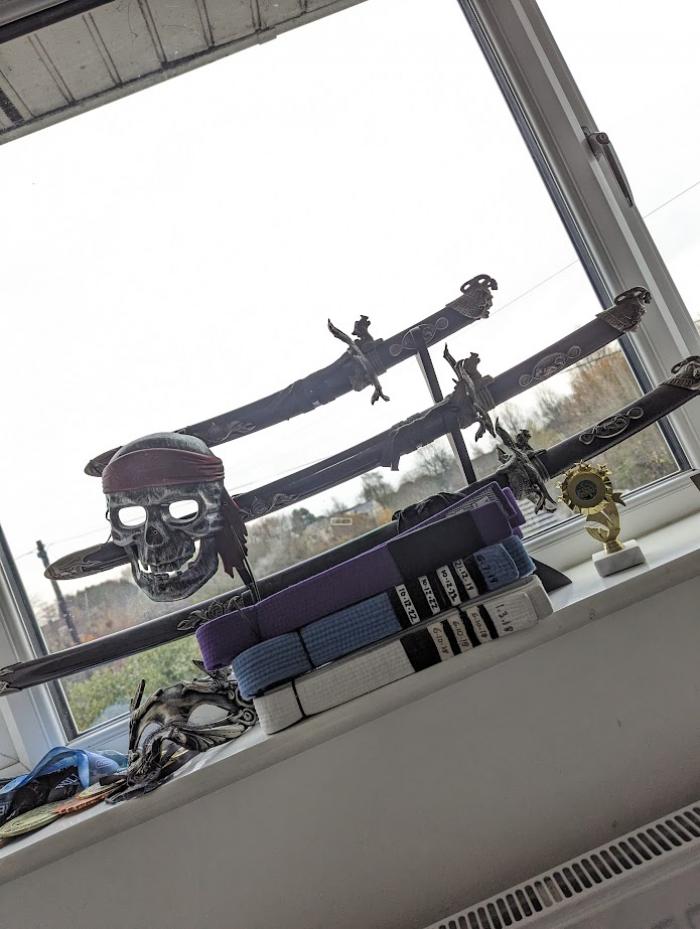 In our gym we have a bokken (a wooden sword like on Davids picture above to see) at the wall where (only!) the BB training in our gym can leave their belt hanging until next session.