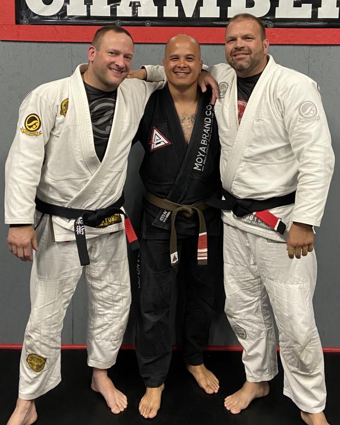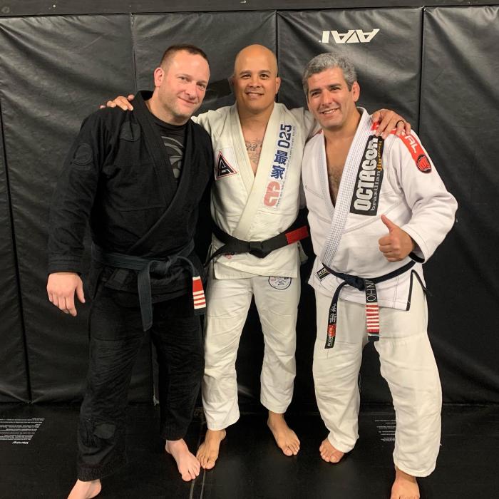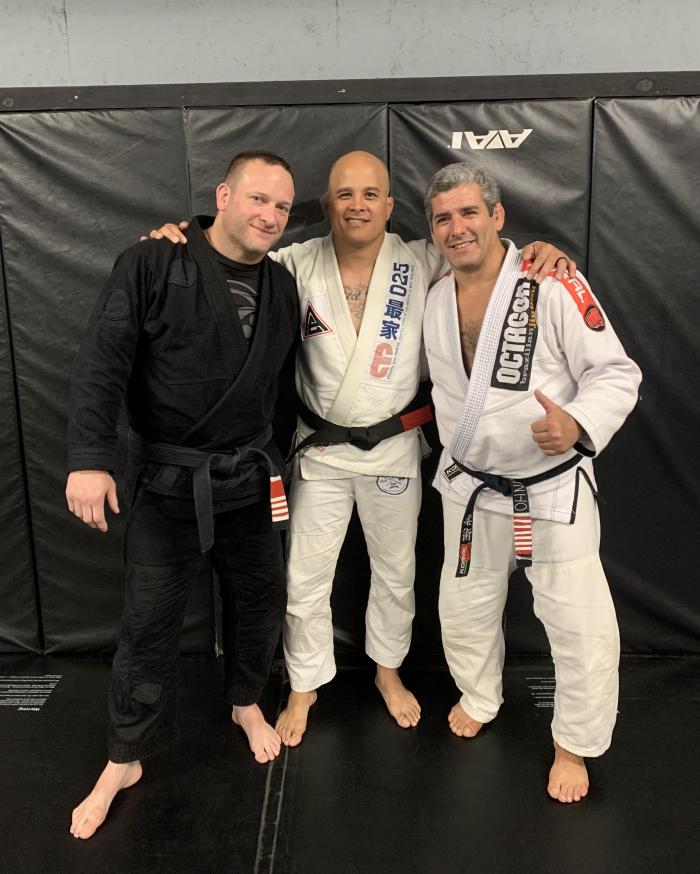 My promotion to black belt with my Professor, Mark Reding, and Professor Octavio Couto