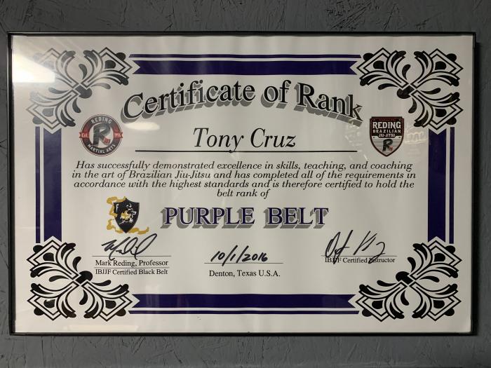 β¦ Tony Cruz is the Owner/Head Instructor of ACBJJ Academy since 2013... he is an Independent Affiliate of Reding Martial Arts in Denton, TX, and is under the direction of 4th Degree Black Belt, Professor Mark Reding...