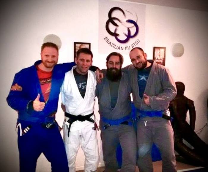 2017, Visiting my friend, BJJ Blackbelt Mark Picton and his Coach, Professor Paul Cole, at 5 rings grappling Mansfield/UK, with 2 of my training partners