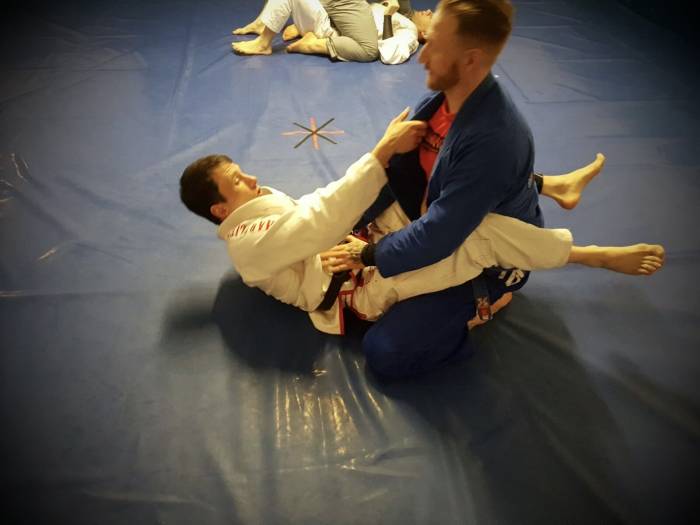 2017, Professor Paul Cole, headcoach of 5 rings grappling, from Mansfield/ UK working with me on my scissor sweep when i was still a bluebelt