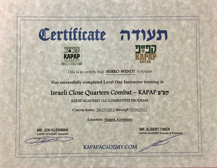 | 8 days Kapap/ Krav Panim el Panim Combatives instructor course | ![]() |