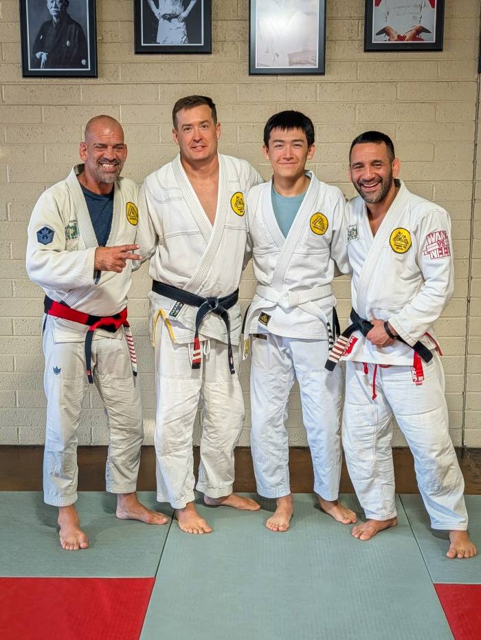 Fueled by the early UFC tapes I borrowed while working at Blockbuster, I started training at Brazilian Jiu-Jitsu Boulder just after purple belt Amal Easton returned from Brazil. At the time, he and/or Mark Johnson were renting mat time from Tim Wolchek at Karate America (2560 28th St., Boulder). I was one of Amal’s first students, built his first website https://web.archive.org/w[...]ctures.htm and helped coach CU Rec Center classes that fed students to his off-campus academy. Amal soon opened his own place next to CompUSA (1750 30th St., Boulder). During summers, I trained with my brother at Fabio Santos in San Diego, CA with Jeff Higgs, Dean Lister, and Jerry Costa and also submission wrestling at SLO Kickboxing with UFC alums Chuck Lidell, Scott Adams, Gan McGee and Jason Von Flue in San Luis Obispo, CA. A few years later, a white belt who had jumped around different gyms, I took a scouting trip to Phoenix to figure out where I wanted to settle down on my jiu jitsu journey. Driving south on I-17, I noticed a “Megaton” academy sticker on blue belt Mike Graeber’s Trans Am. I looked up who Megaton was, and that chance sighting ended up shaping my move - I started focusing my housing search near his academy so I could train there. Small, chance moments can have a big impact on later life events! Mike is now the lead instructor at Gracie Humaitá Kansas City.