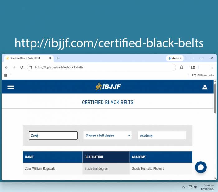 Lineage: Mitsuyo "Count Koma" Maeda → Carlos Gracie, Sr. → Helio Gracie → Royler Gracie → Wellington "Megaton" Dias → Zeke Ragsdale