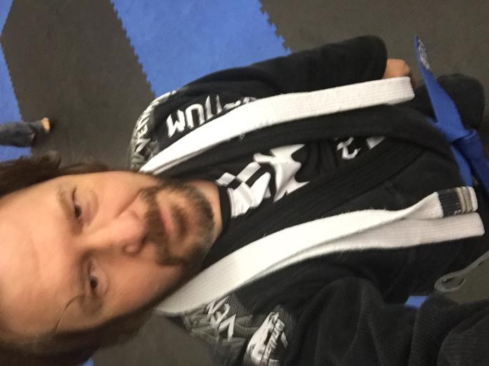 I started grappling around 1993 after watching UFC 1. Me and some friends would meet at my buddys house and do rounds using an old Judo book "Judo and Self Defense by E.G. Bartlett" as a guide. Then years later I would take a Japanese Jiu Jitsu class in 2004 and earn a black belt in it in 2006. I started supplementing my grappling with stuff from Submissions 101 Youtube channel and from some Brazillian Jiu Jitsu seminars. I did a couple of amature MMA matches and then I pretty much quit traiining and would roll once in a while with friends to show them some things. Then in March of 2018 I finally started taking a real Brazillian Jiu Jitsu class. I wish I had started sooner, but better late than never.