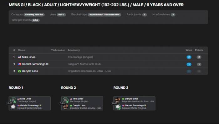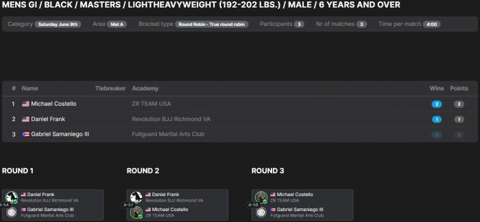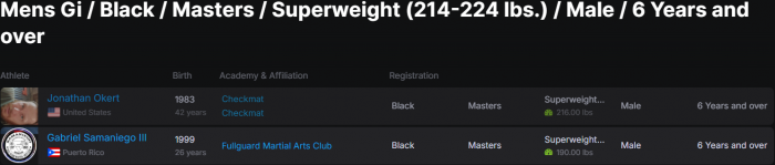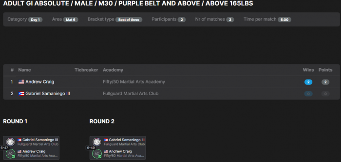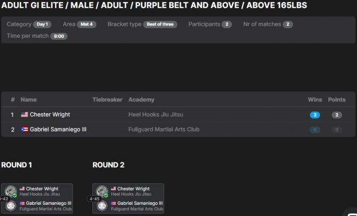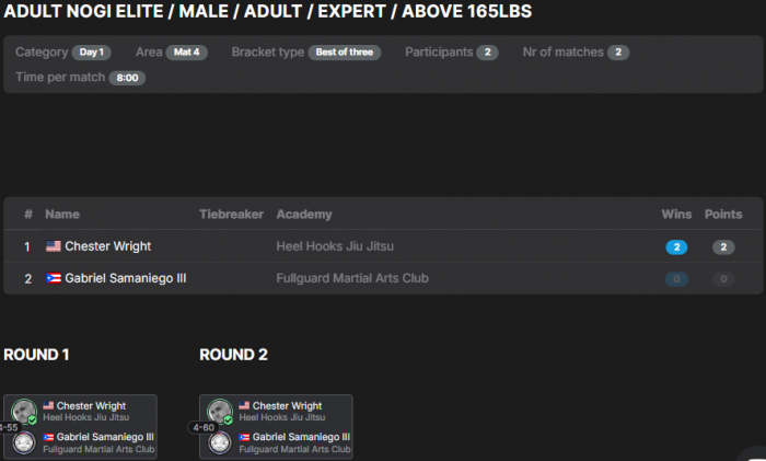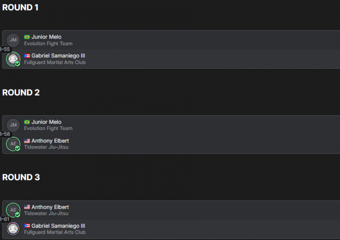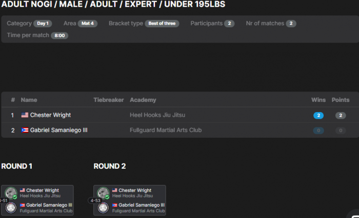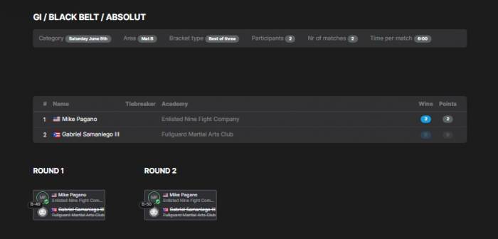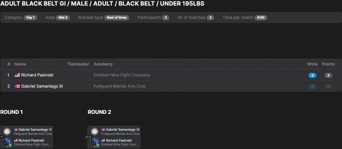 ![]() | Matt Larsen'Combat Fitness Center Round Robin No GI Submission Grappling Tounament |   |