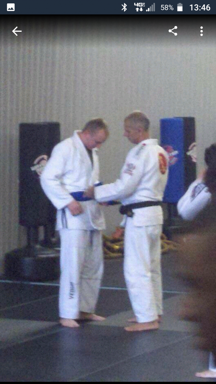 After my Academy left from under the American Top Team affiliate we switched to the DelaRiva Association and I received my blue belt from Professor DelaRiva.