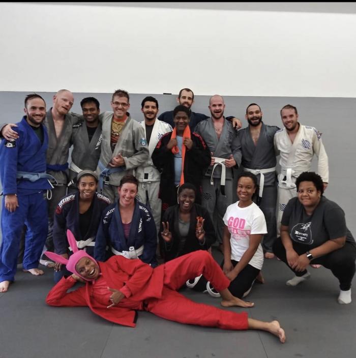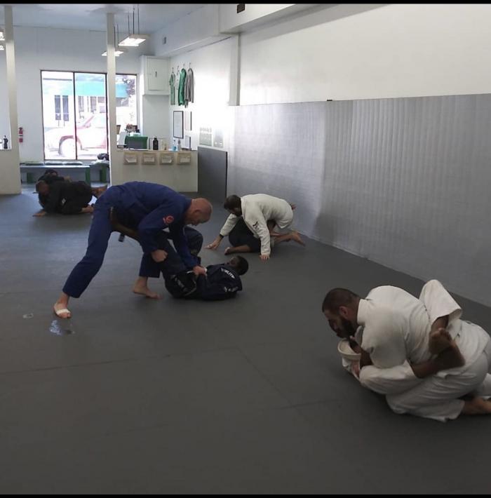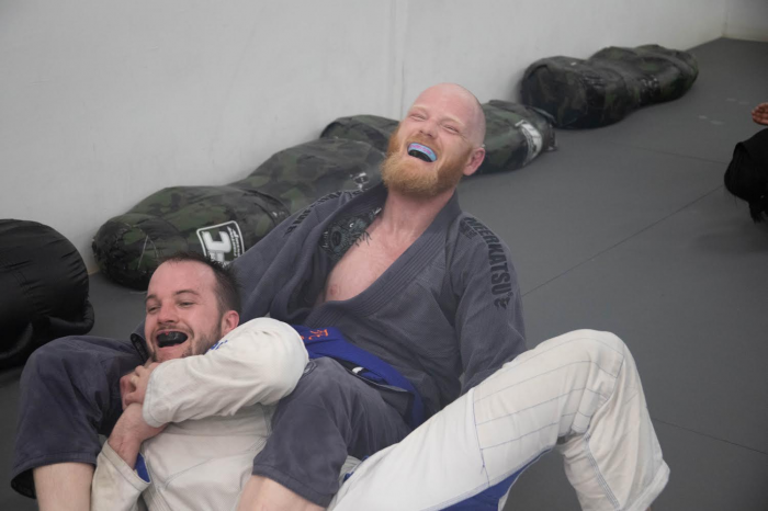 Rolling with my teammate while visiting another gym