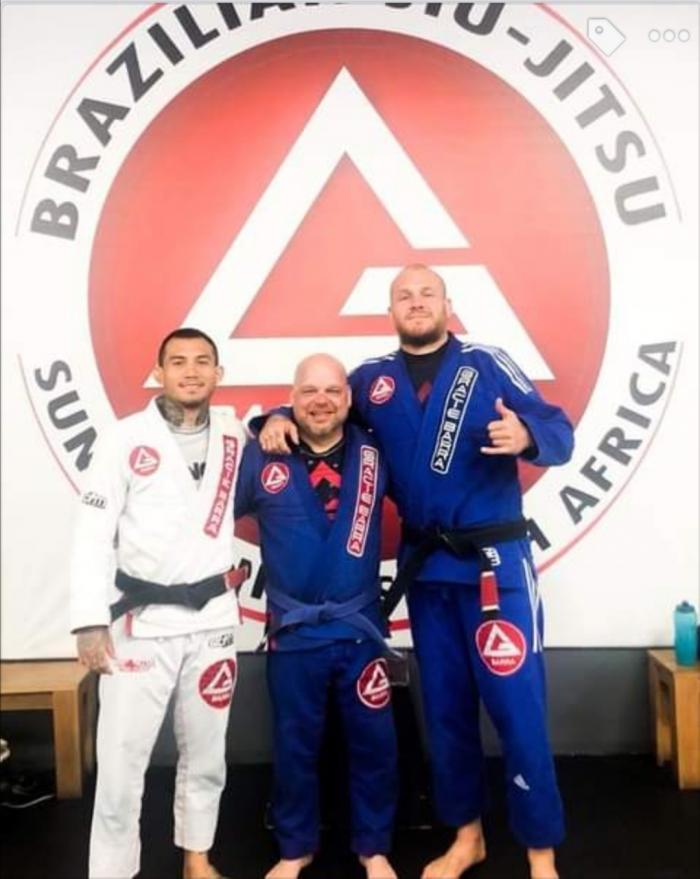 Introduced to BJJ by Jurgen Putter and Francois Groenewald of Rio Grappling after 10 years of Muaythai and Kickboxing at Warrior Sports Centurion under Brett Clarke. Stopped regular stand up classes after the BJJ bug bit. Officially started BJJ on 22 June 2015 at Monkey Jits Centurion under Prof. Jacques Wagner and was awarded their blue belt on 23 November 2016. Joined Gracie Barra Kyalami under Prof. Garreth McLellan and Prof. Shana Power around March 2018 and was officially certified as a blue belt with them on 28 October 2018. In January 2019 joined FFM Quan Wessels Cobrinha Sunninghill under Prof. Richard Quan and Prof. Norman Wessels and graded and officially certified as a blue belt with them on 13 December 2019. Moved to Constrictor Jiujitsu Pretoria under Prof. Calvin Moodley mid 2023 and was awarded purple on 14 Dec 2023. Currently instruct a Saturday morning 7am fundamentals class for adults and compete 3 to 4 times a year (Under 70kg. Masters 5 age group).