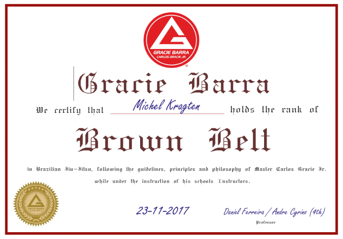 Lineage: MITSUYO MAEDA - SHIHAN WIM BOERSMA - MASTER CARLOS GRACIE sr. + jr. - REMCO PARDOEL