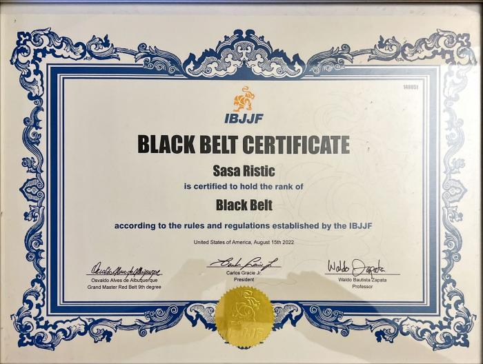 Lineage: Kano Jigoro > Tsunejiro Tomita > Mitsuyo Maeda > Carlos Gracie > Helio Gracie > Rolls Gracie > Romero Cavalcanti > Leonardo Vieira > Waldo Zapata > Sasa Ristic