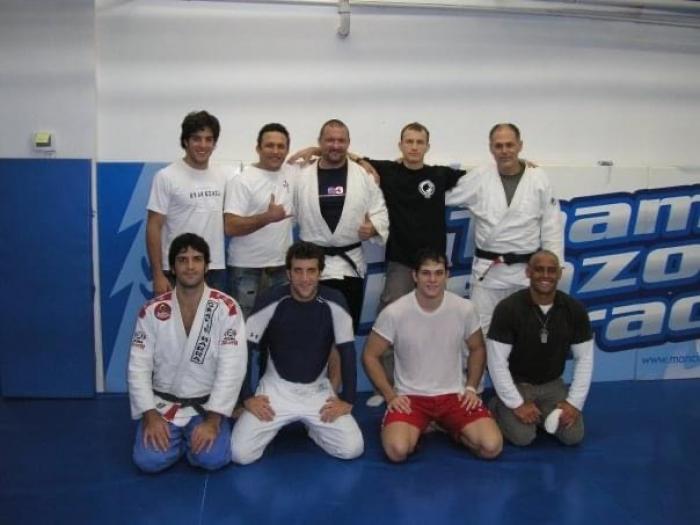 Here are pix of renzo putting my belt on. Me with 8 members of the Gracie family after my promotion. Roger and I after training that evening. He loaned me his GI to get my promotion.