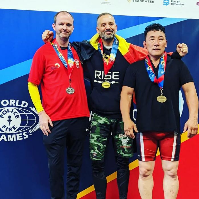 With coach Philip and buddy Greg at the World police & fire games 2022