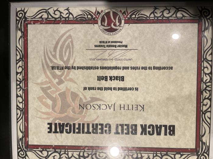 Black belt cert 2014 (typo says 2015 on cert)