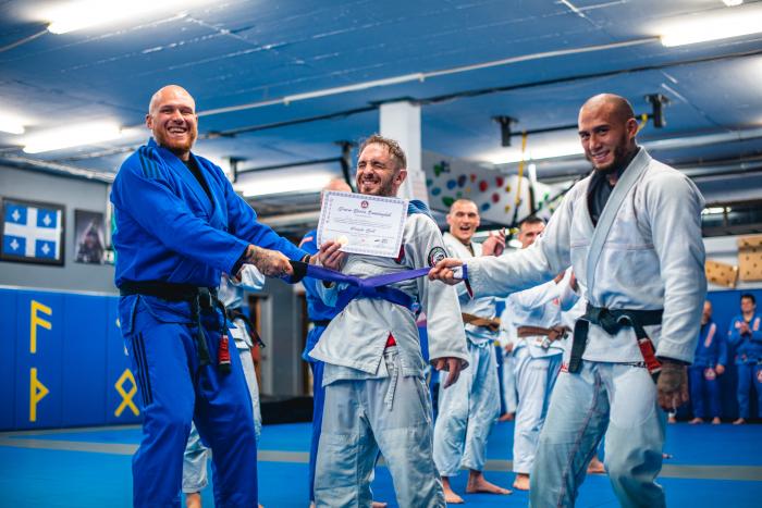 Receiving my purple belt