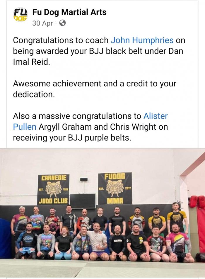 ![]() | John Humphries Fu Dog MMA Cowdenbeath, United Kingdom Black belt |