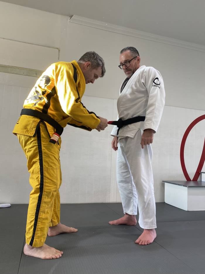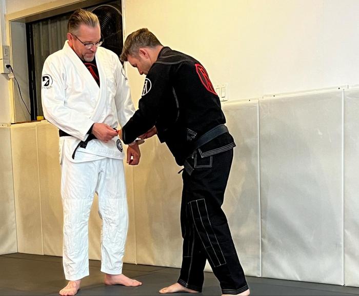 Wanted a picture in the gi of Stephan giving me my 2nd degree stripe taken on 02/07/2026.