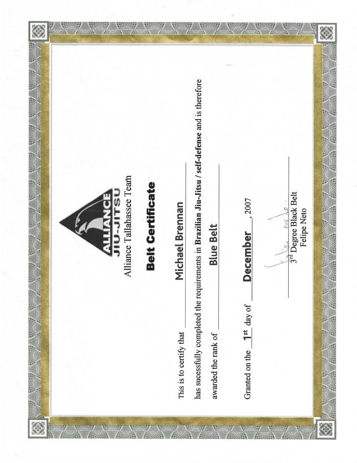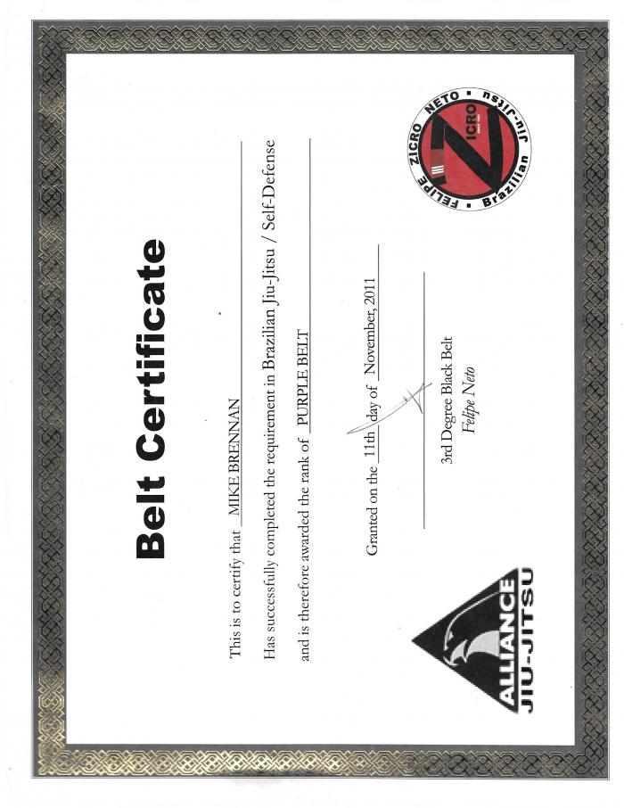 Lineage: Mitsuyo Maeda > Carlos Gracie > Carlson Gracie > Murilo Bustamante > Marcello Bergo > Michael Brennan