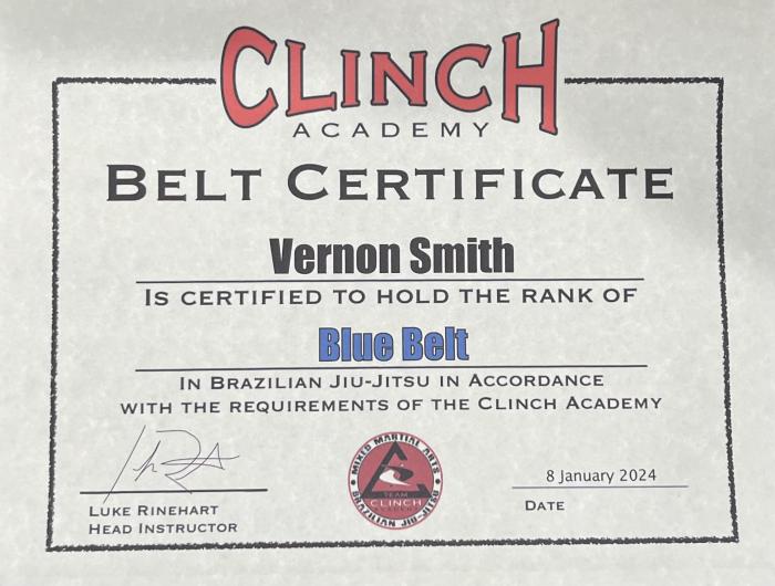 I am a student at Clinch Academy in Frederick, MD. I am a blue belt under Luke Rinehart.