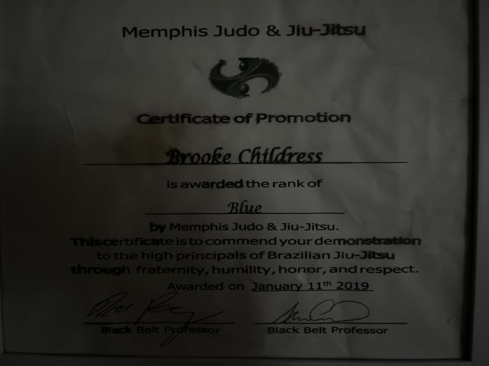 ![]() | Christy Cook Memphis Judo and Jiu-Jitsu Memphis, Black belt 1st degree |
