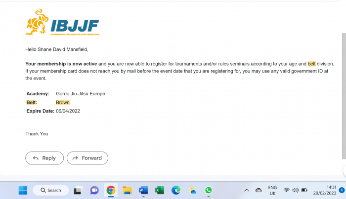 Ben Poppleton officially promoted me as head of Gordo - I attach my IBJJF confirmations too. Thanks.
