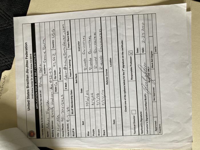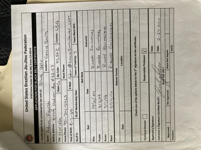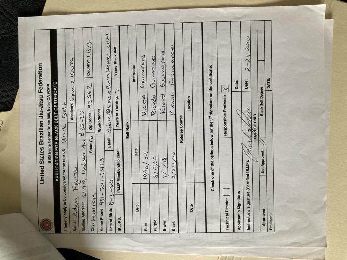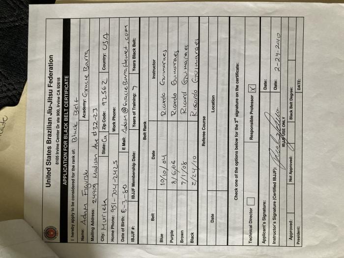 Promotion history checks out ( https://www.graciemag.com[...]ack-belts/ ), but I'll wait with up voting until you've added pics with Ricardo plus lineage to your profile. 1 year(s) ago |