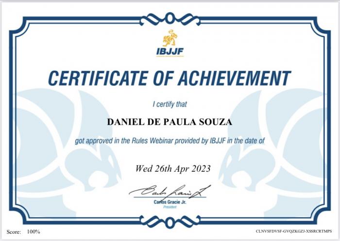 Register at FMJJ (Federação Mineira de JiuJitsu)ID#0104. LBJJ (Liga Brazileira de JiuJitsu)ID#063. CBJJ(Confederação Brazileira de JiuJitsu)ID#1061. IBJJF (internacional Brazilian Jiu-Jitsu Federation)ID#1061