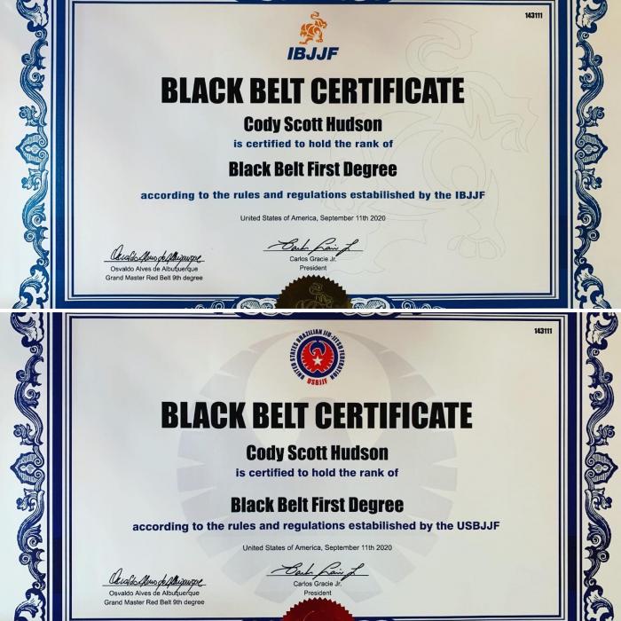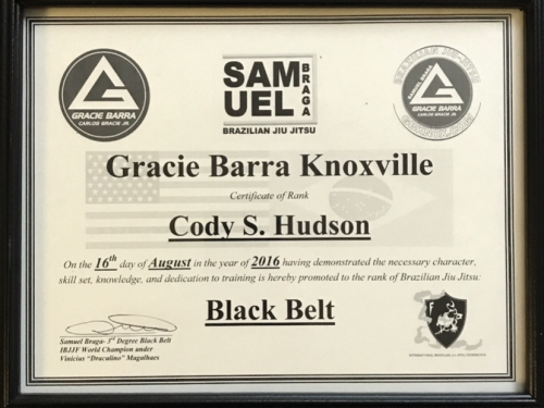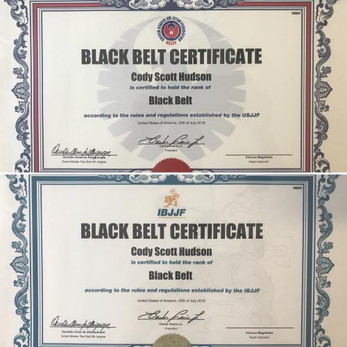 Promoted 08/16/16 then certified my black belt through the IBJJF