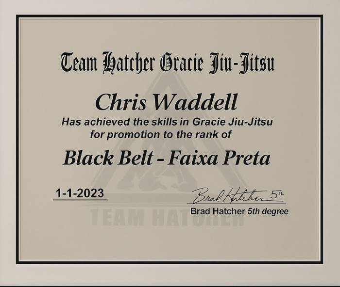 Lineage: Mitsuyo Maeda > Carlos Gracie > Helio Gracie > Rickson Gracie > Luiz Palhares > Brad Hatcher > Chris Waddell