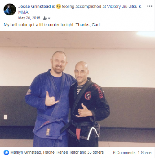 This is the date that I returned to training after a very long hiatus. I actually began training in BJJ as early as 2002, and I trained on and off until as late as 2010. I decided to return to training when my former training partner, Carl Vickery, received his black belt and opened up an academy. Former coaches include the late Sean Wilson, a black belt under Gustavo Machado, and Fletch Fuller, now a black belt under Marcelo Pereira.