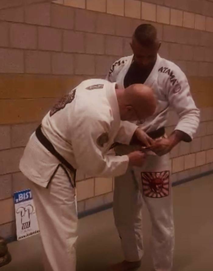 Professor Frank Beels and Professor Hanshi Eric Van Vaerenbergh after Promoting me to Bjj Blackbelt