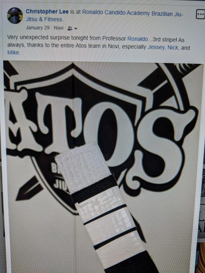 Started training at Gracie Barra Novi (Michigan); earned 1st, 2nd, and 3rd stripe at Ronaldo Candido Academy (Novi, Michigan); earned 4th stripe at Elite Jiu-Jitsu (Livonia, Michigan)