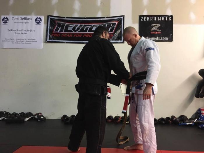 Promoted to Black belt at our seminar with Tom DeBlass, his first affiliate black belt