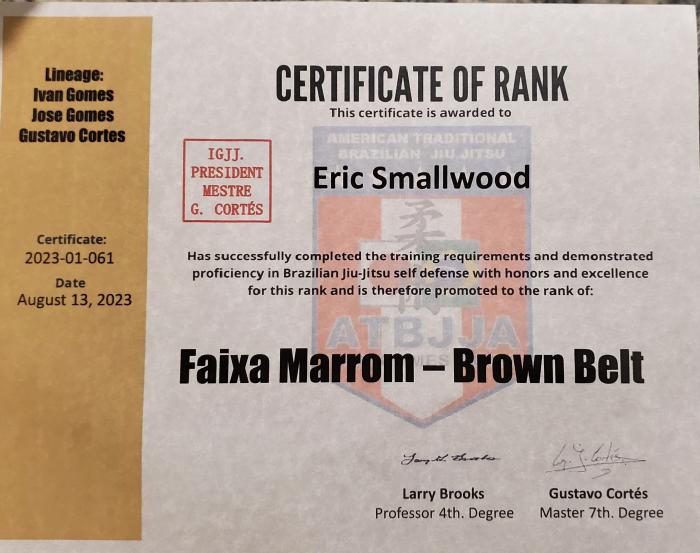 Lineage: Jigoro Kano > Hajime Isogai > Takeo Yano > Jose Maria Freire > Ivan Gomes > Jose Gomes > Gustavo Cortes > Eric Smallwood