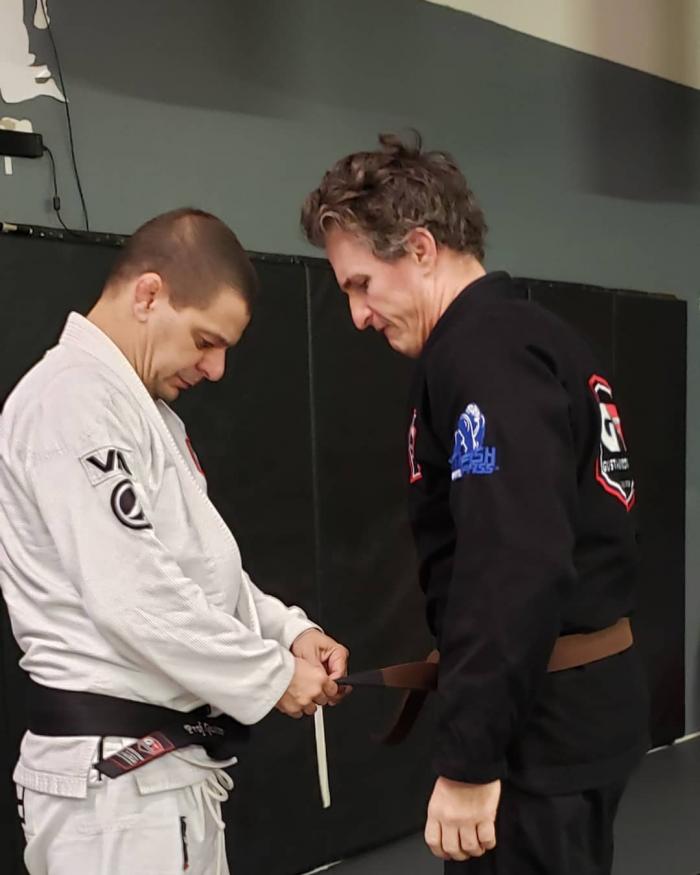 Lineage: Mitsuyo Maeda→Carlos Gracie → Carlson Gracie → Elcio Figueiredo→ João Teco Shinzato→ Gustavo Rodrigues